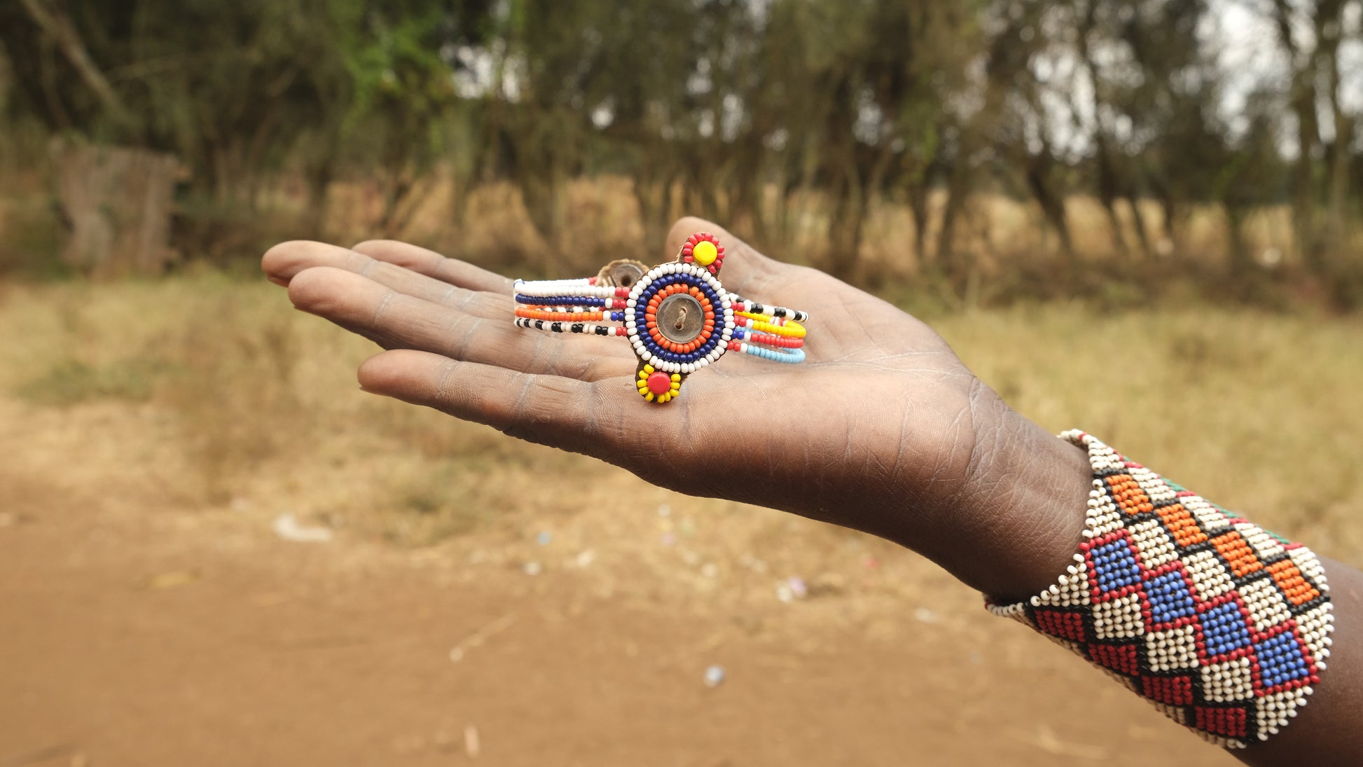 Beautiful handmade Maasai bracelet with colorful beads.